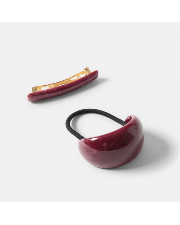 2 Pack Red Barrette Hair Tie and Clip Set