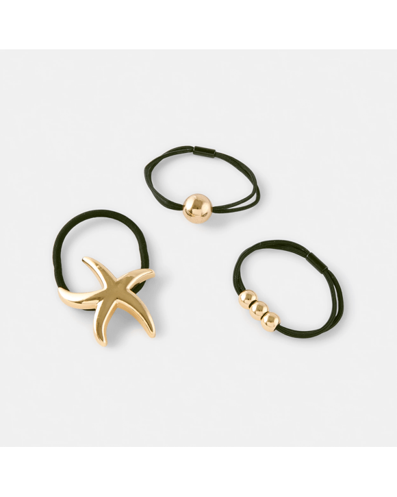 3 Pack Starfish Hair Ties - Gold Tone and Black