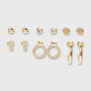 6 Pack Stud, Hoop and Huggie Earrings Set - Gold Tone