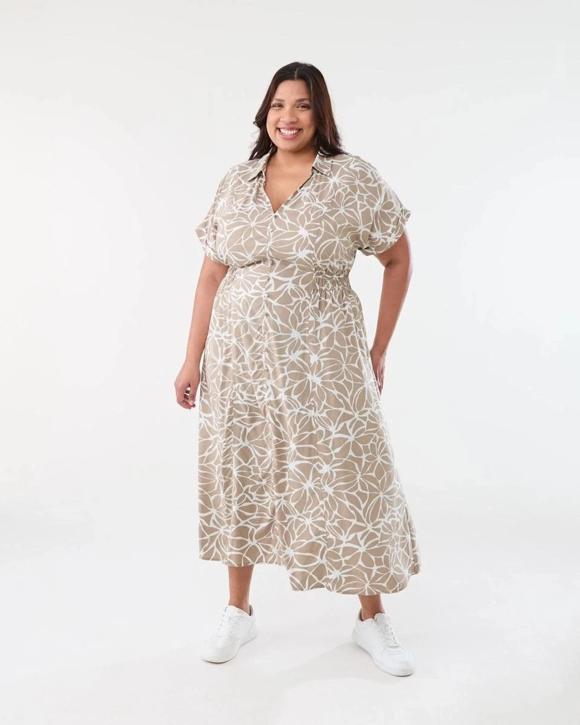 Curve Short Sleeve Shirt Midi Dress