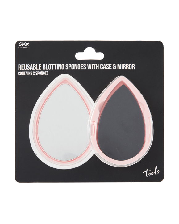 OXX Cosmetics 2 Pack Reusable Blotting Sponges with Case and Mirror - Black and Pink