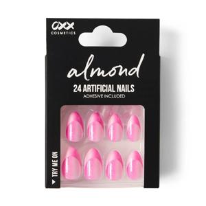 OXX Cosmetics 24 Pack Artificial Nails with Adhesive - Almond Shape, Pink Shimmer