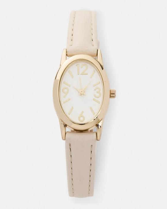 Womens Oval PU Watch - Beige